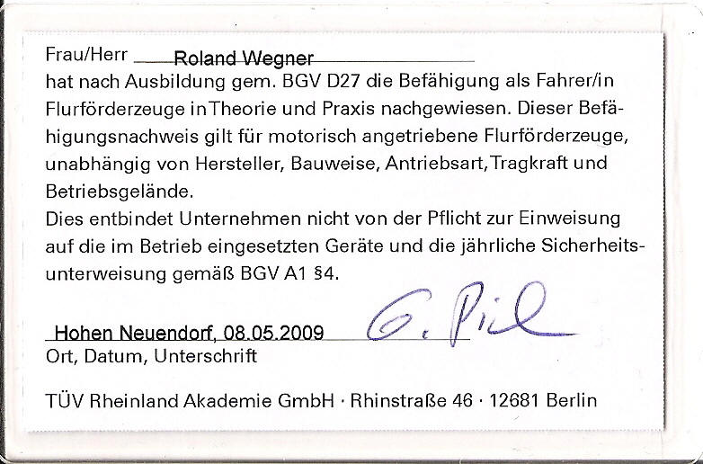 Gabelstapler und Flurfördermaschinenschein : 08.Mai.2009